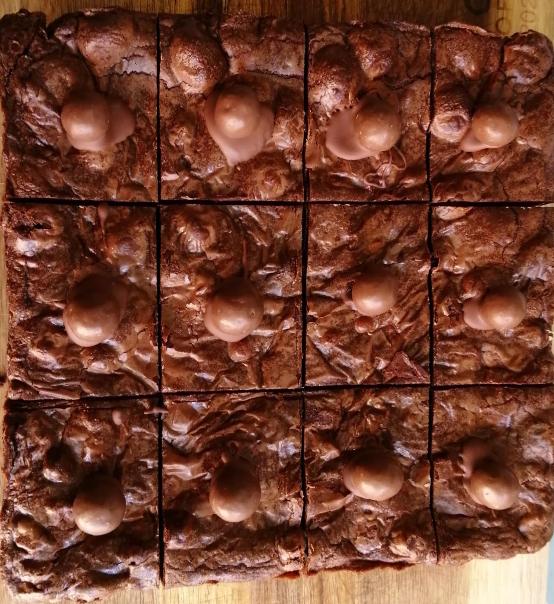 Ingredients - Butter, Milk Chocolate, Caster Sugar, Light Brown Sugar, Plain Flour, Malteser, Malteser Spread, Eggs, Cocoa Powder, Rapeseed Oil, Malted Milk Powder, Vanilla Essence, Milk Powder, Salt, Espresso Powder, Baking Powder.